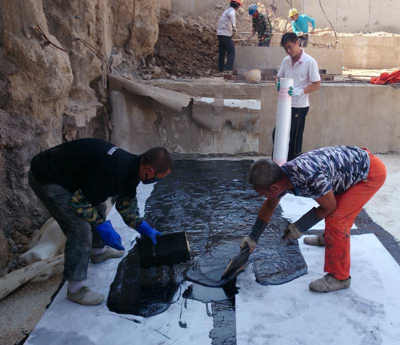 涂料喷涂施工:使用专用加热喷涂设备,将非固化橡胶沥青防水涂料加热至65-75℃后进行十字交叉喷涂,确保涂层厚度均匀达标。针对变形缝、施工缝等特殊部位,采用"防水涂料+密封膏+止水带"三重防护,强化节点防水效果。